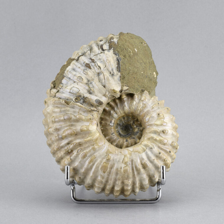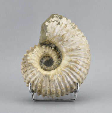 A beautiful ammonite Douvilleiceras mammillatum in gorgeous nacreous shell. The inner whorls were prepared to reveal the umbilical spines.