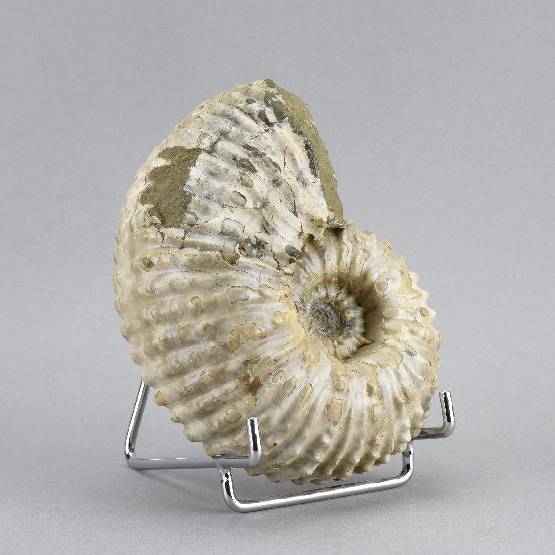 A beautiful ammonite Douvilleiceras mammillatum in gorgeous nacreous shell. The inner whorls were prepared to reveal the umbilical spines.