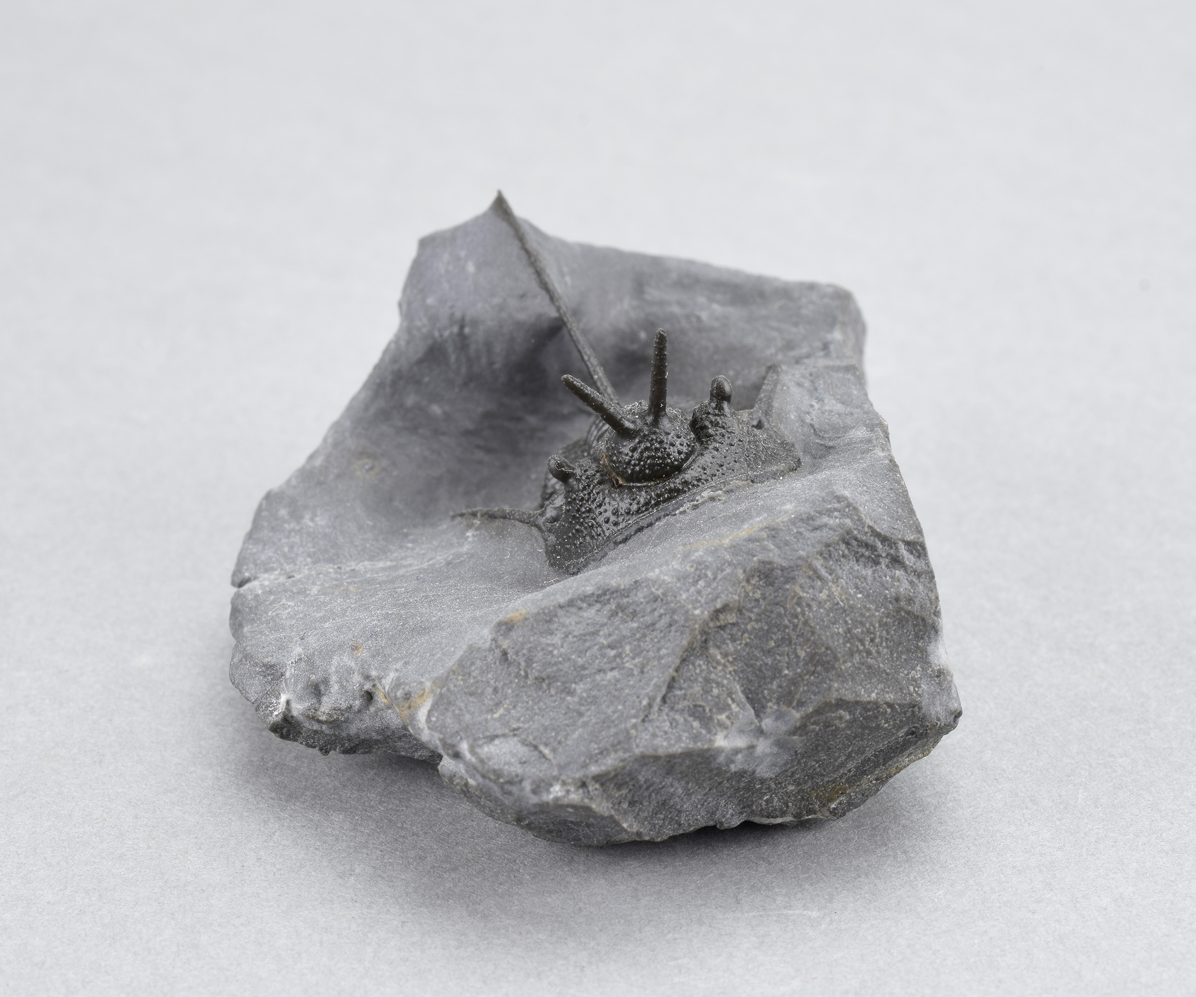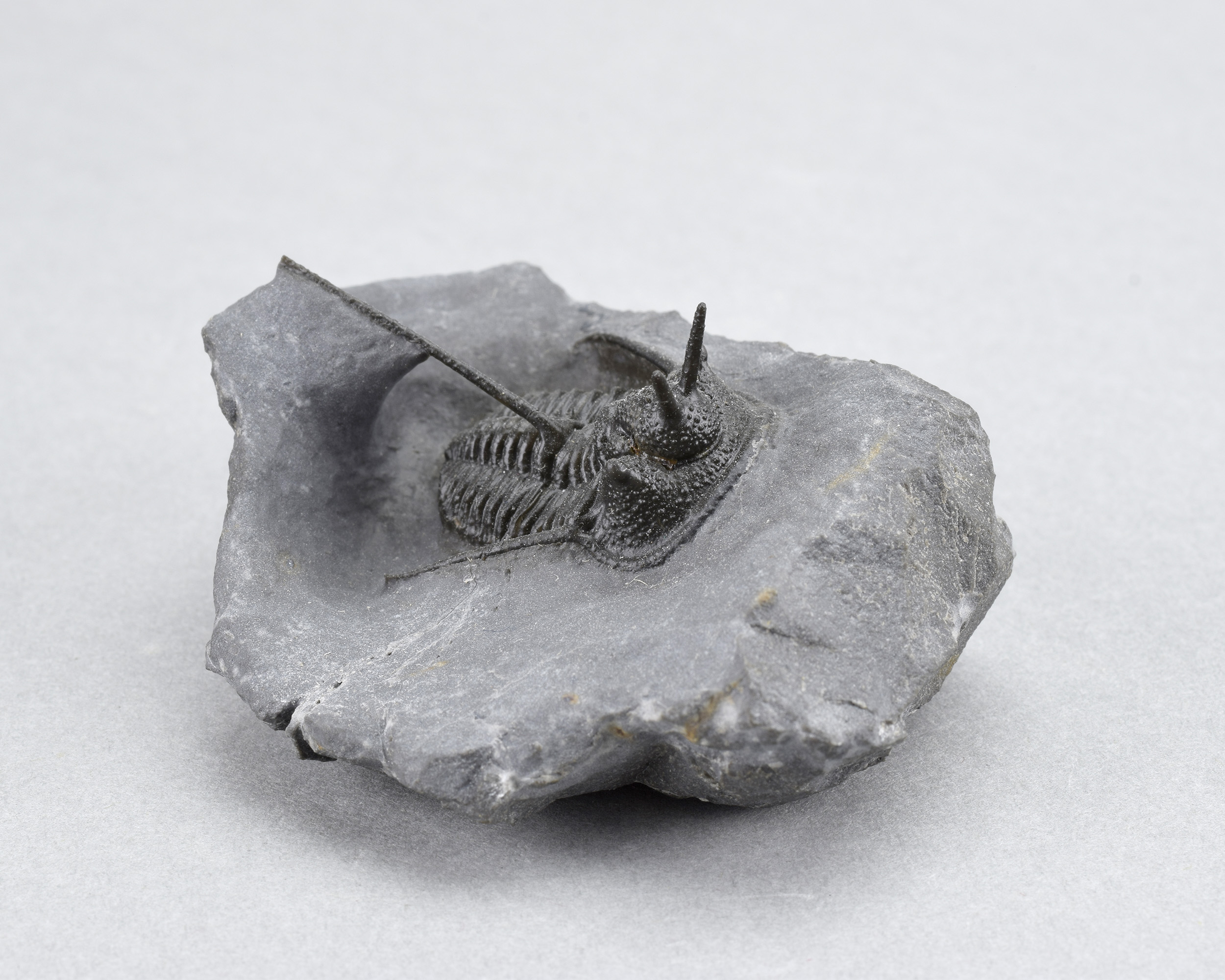 Cyphaspis walteri are often named “devil-horn” trilobites by collectors because of their paired glabellar spines.