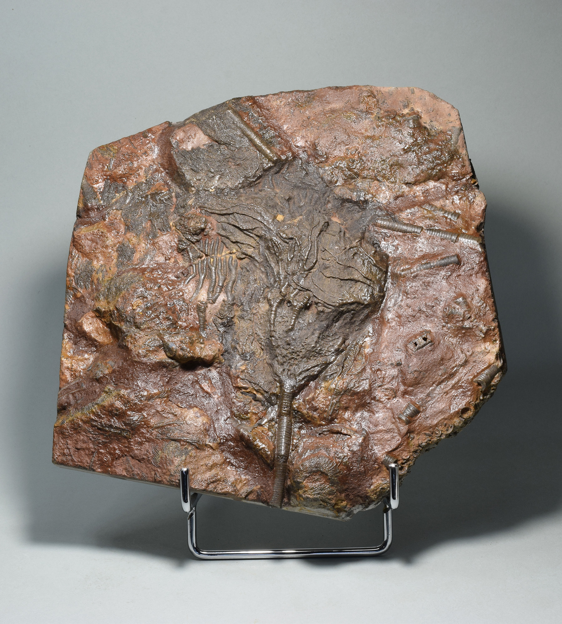 A decorative slab with a fine Scyphocrinites elegans crinoid.