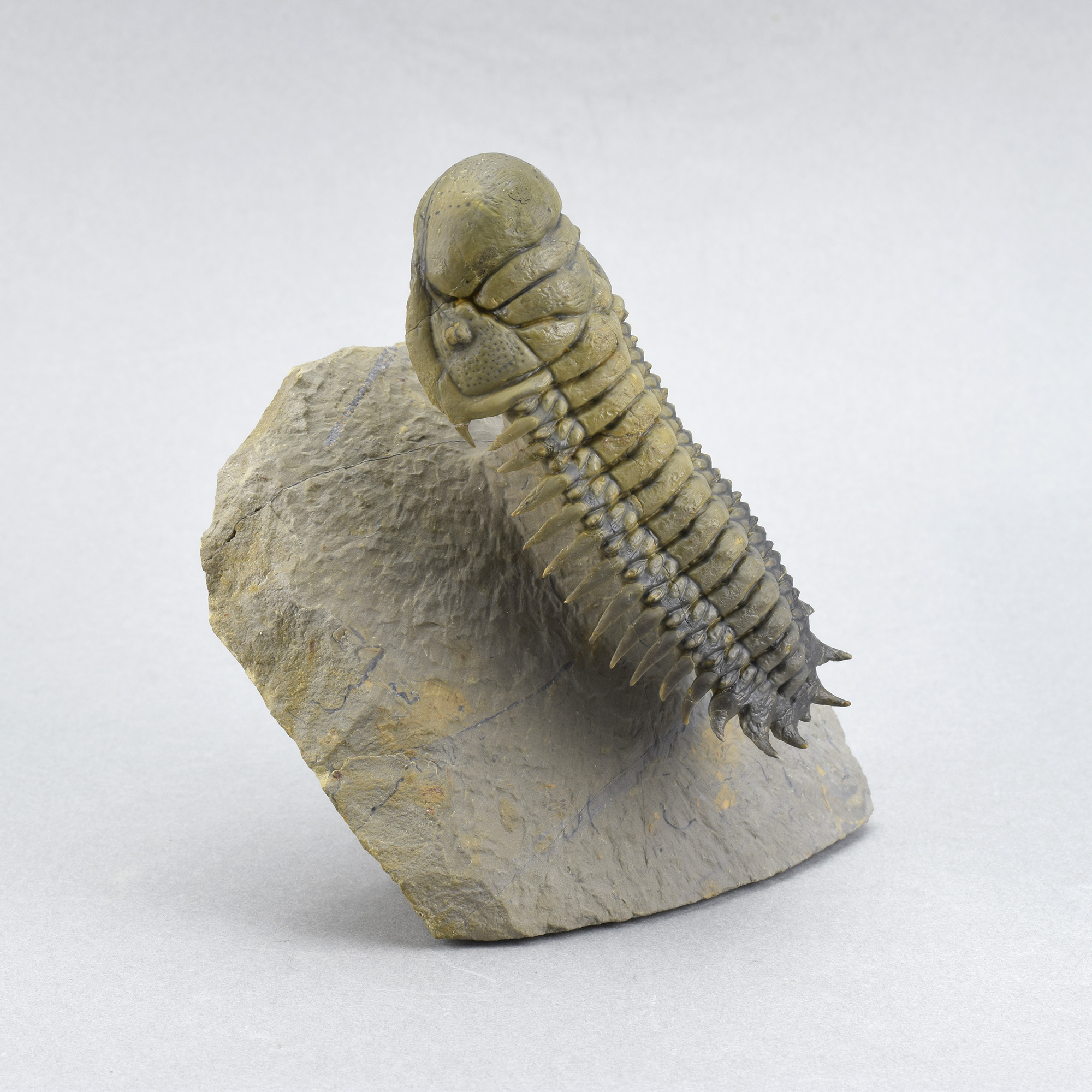 Measurements: c. 9 cm long (trilobite) – c. 9 × 10 x 6 cm (matrix and trilobite)