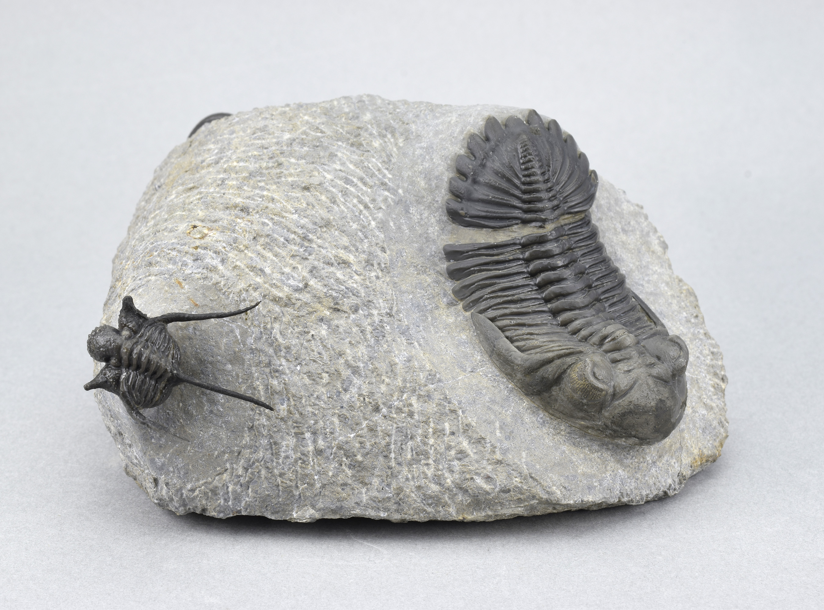 Measurements: c. 33 mm long (Cyphaspis) – c. 12 × 9.5 × 6.5 cm (matrix)