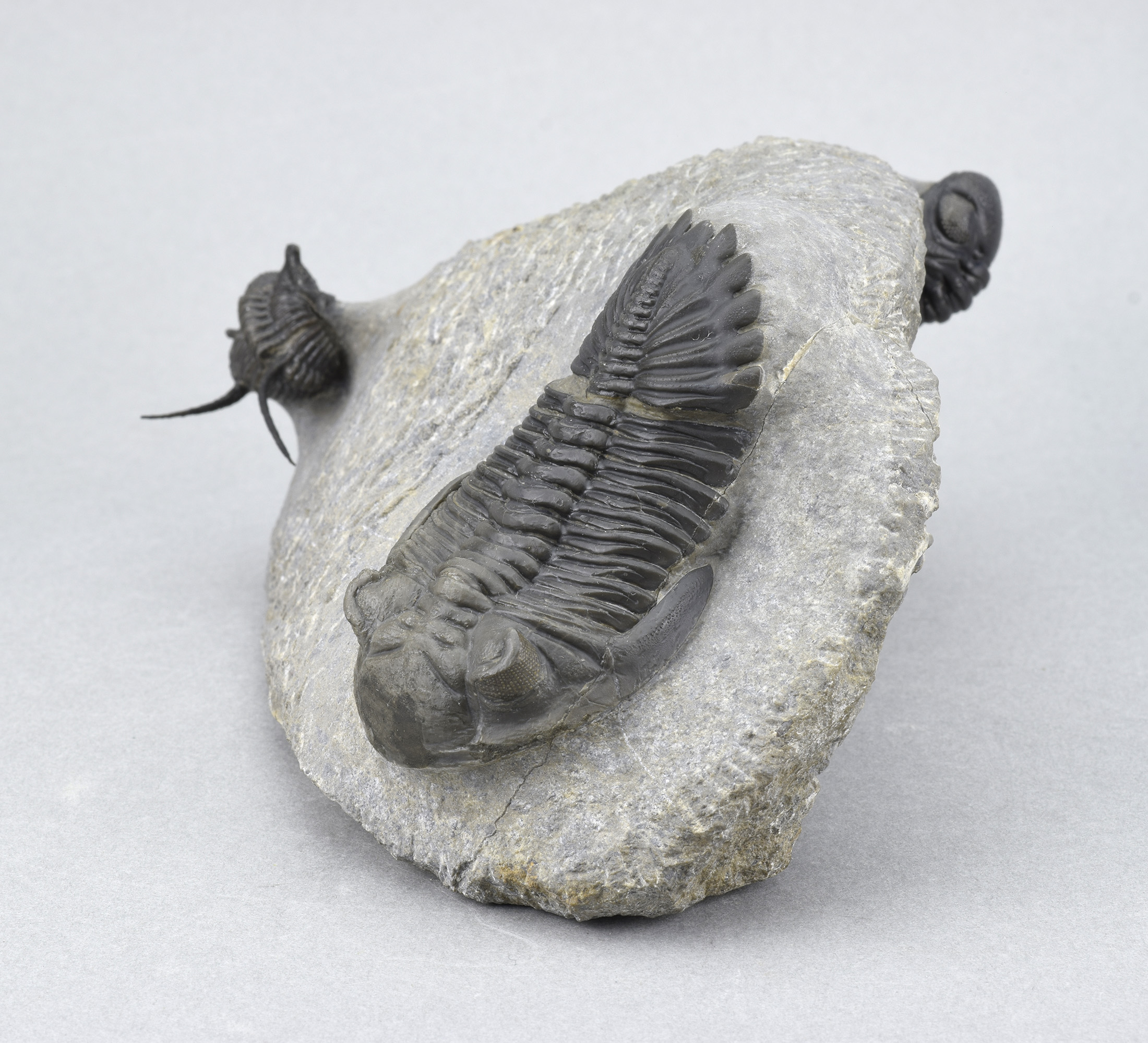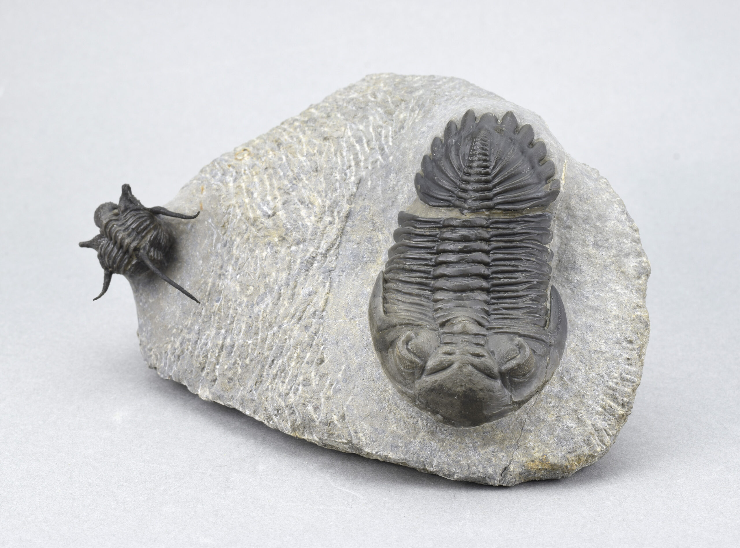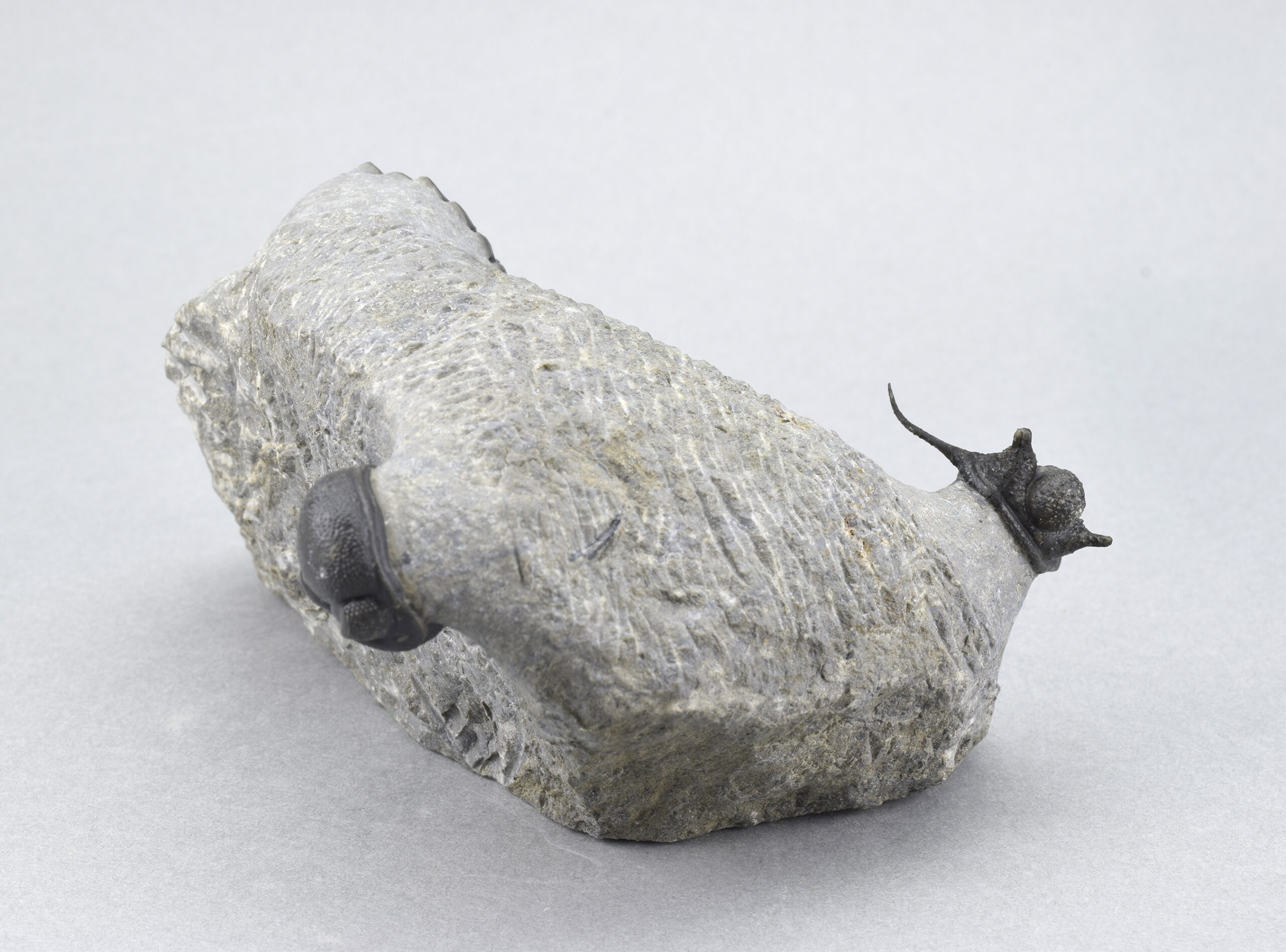 Measurements: c. 33 mm long (Cyphaspis) – c. 12 × 9.5 × 6.5 cm (matrix)
