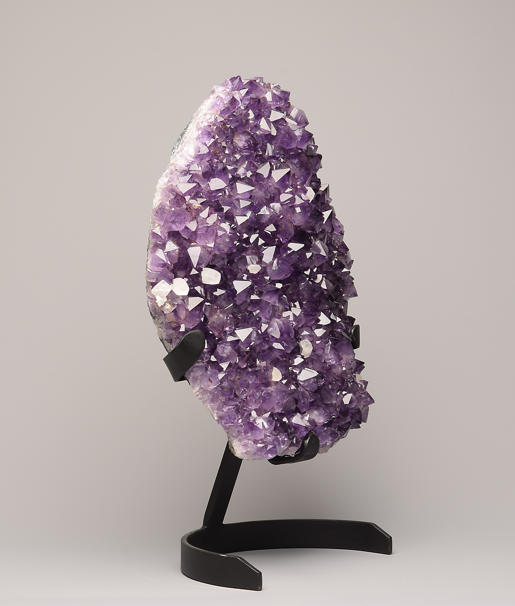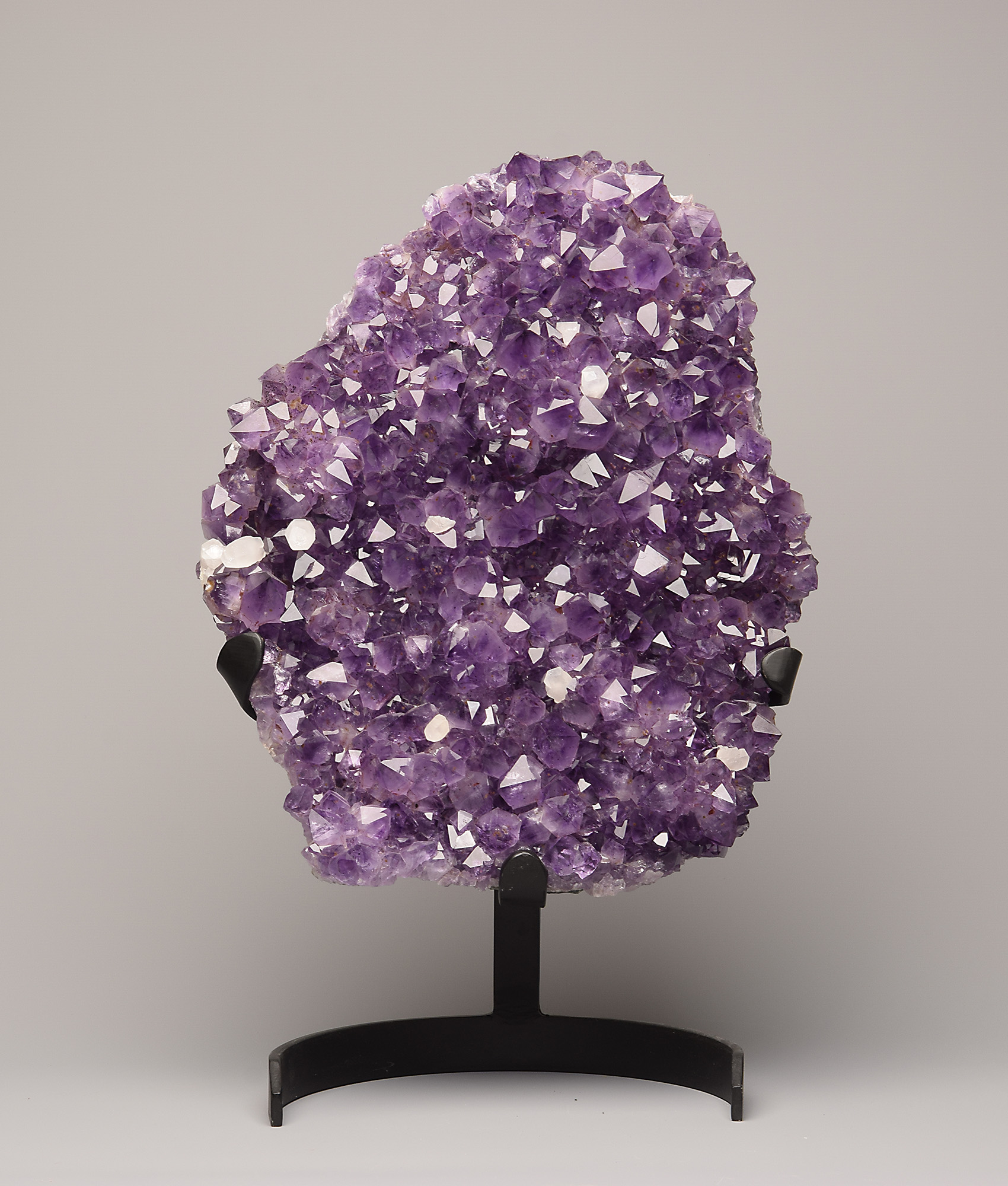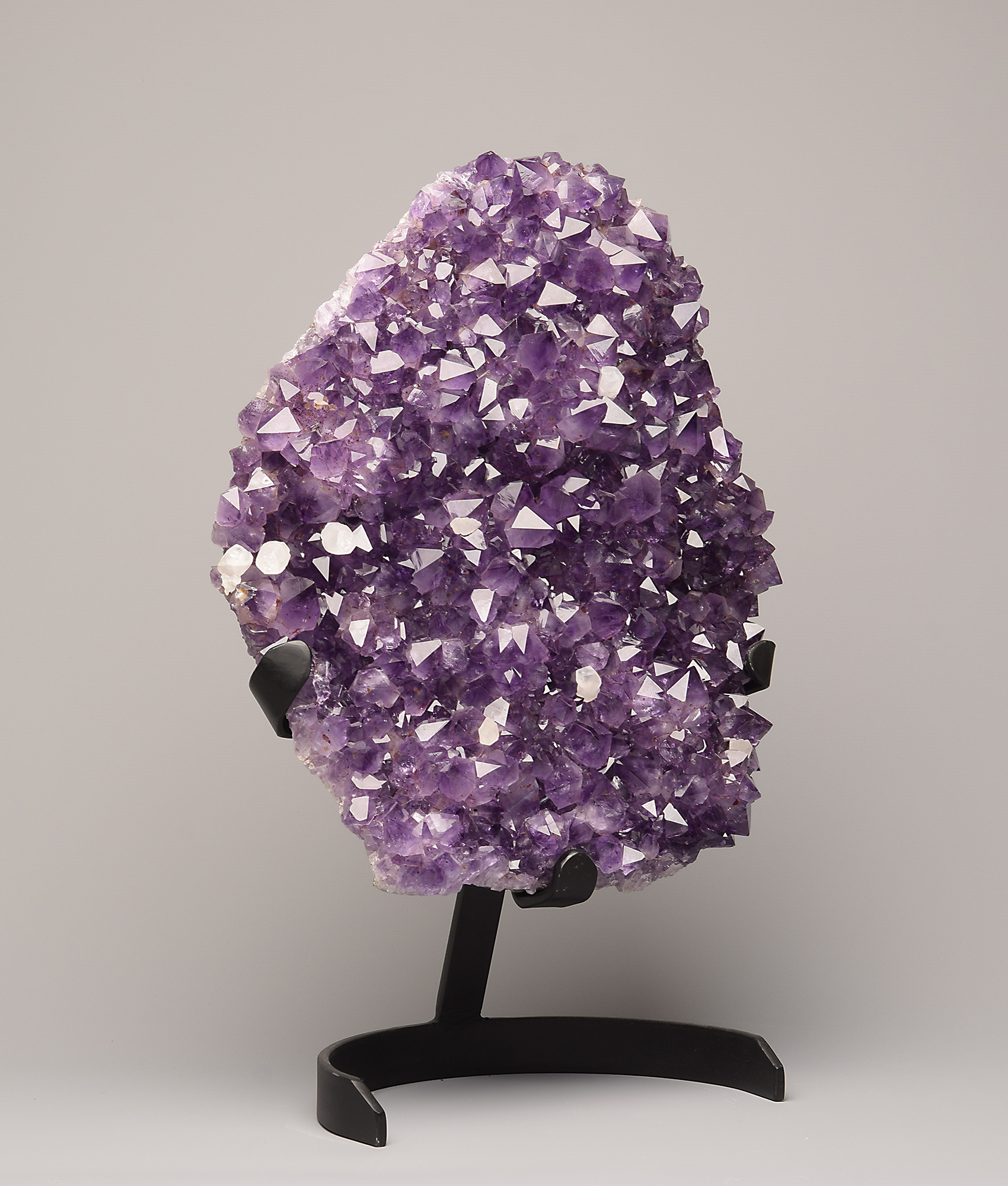 Outstanding amethyst druse on metal display from Ametista do Sul, Rio Grande do Sul, Brazil.