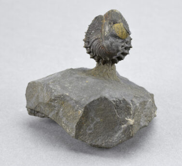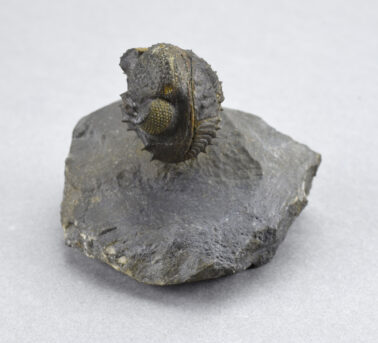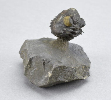 Although Drotops armatus is one of the most sought-after trilobites from the Devonian of Morocco, juvenile specimens are rarely seen on the open market. This genuine specimen was prepared by a professional preparator, to reveal delicate spines and beautiful eyes. The trilobite sits on limestone matrix in a dramatic way. An outstanding piece !