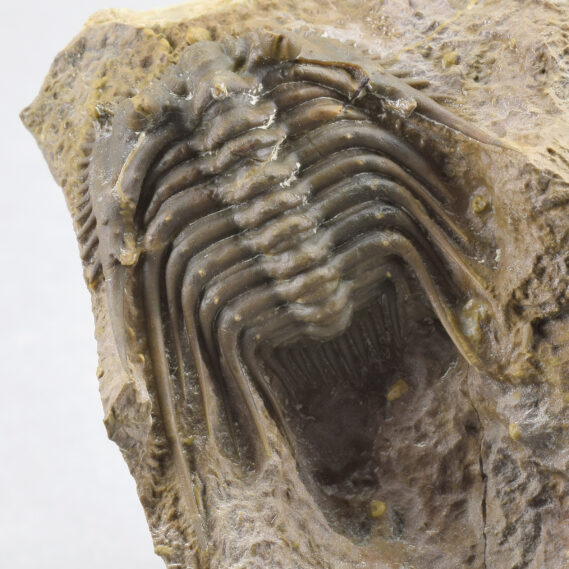The arrangement of pygidial spines of this exquisite Kettneraspis is very close to that of the recently described Kettneraspis dickinsoni van Viersen et al. 2025. This rare trilobite is exquisite, shows beautiful caramel colour, stunning and well-preserved occipital horn, marginal cephalic spines and secondary spines on the genal spines.