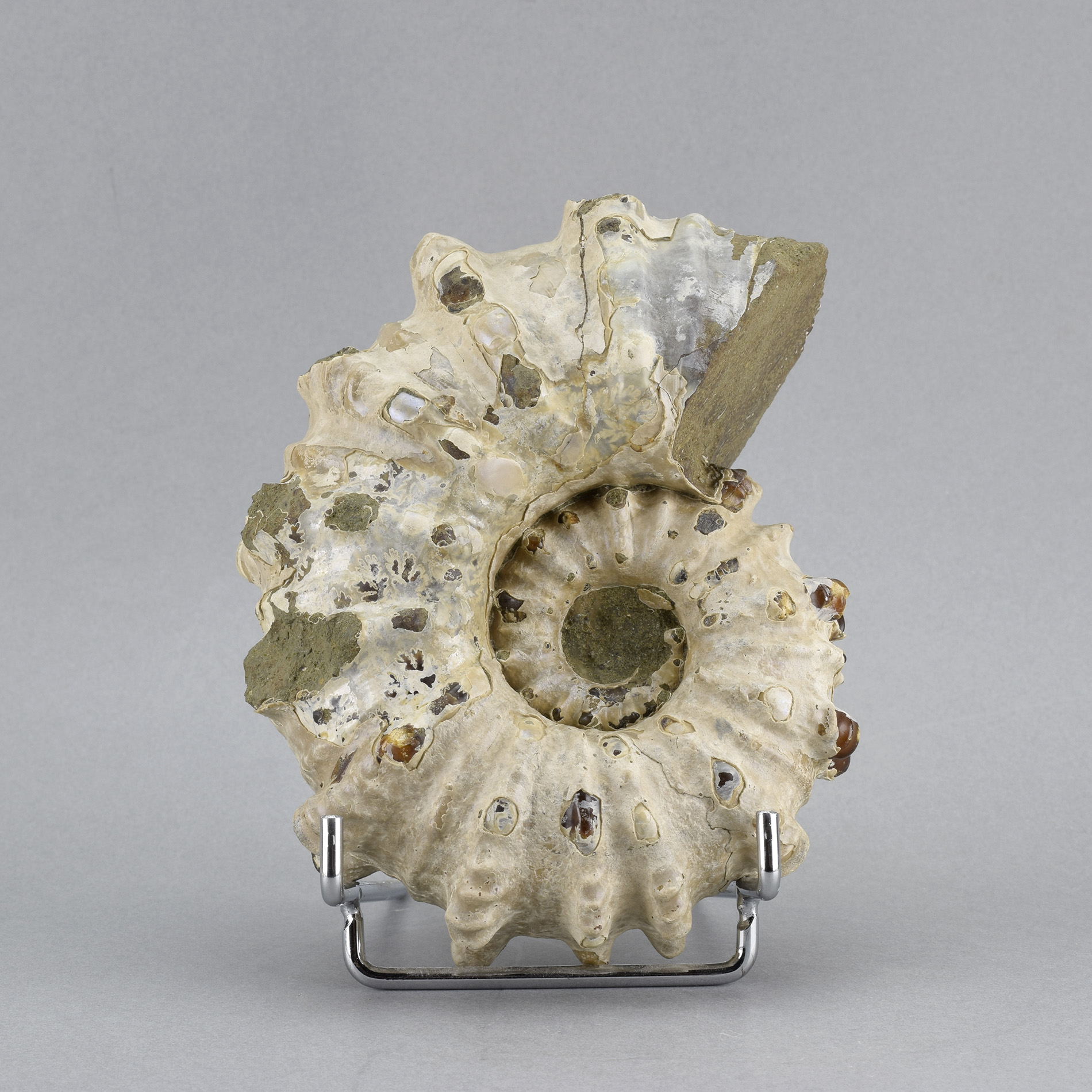 A beautiful ammonite Douvilleiceras inaequinodum in gorgeous nacreous shell.